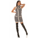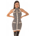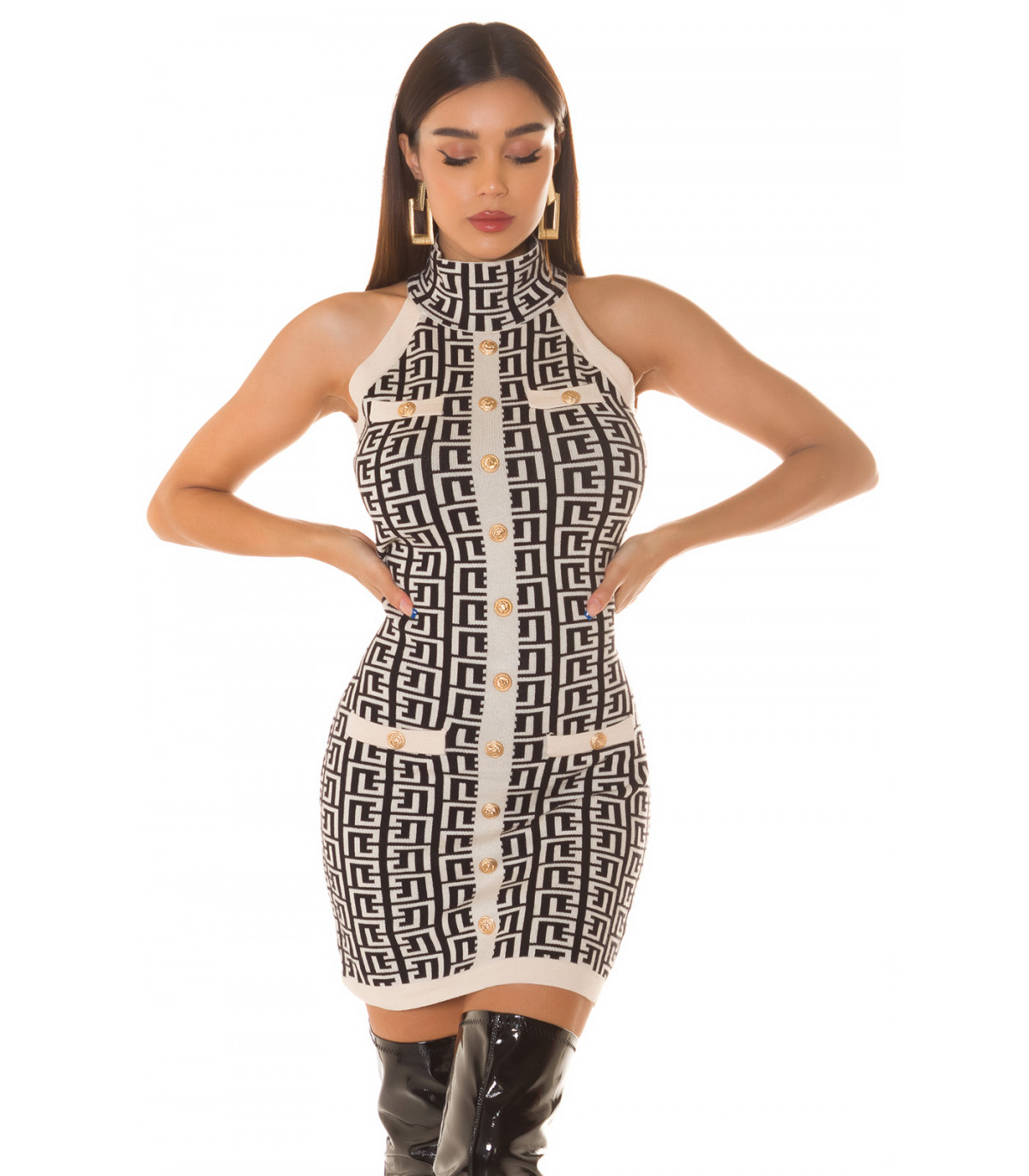 Beige black sleeveless "fashionista" knitted dress with spectacular details.