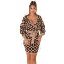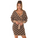 Beige black checkered print pattern long-sleeved v-knit dress with bat sleeves and belt. A feminine knitted dress with a v-neck is fabulous and versatile, as it is suitable for many different occasions. Fabulous checkerboard pattern, bat sleeves and belt are fine details that will arouse admiration. checkered knitted dress is suitable for everyday life, dates and evening gatherings. The wrap-around knitted dress flatters feminine forms. You can position the neckline according to your own taste, either more opaque or more open. The stretchy knitted dress is comfortable to wear and it is easy to create different outfits around it. A different, stylish checkerboard pattern stands out from the crowd.