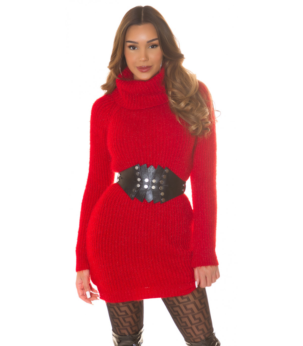 Koucla punainen korkeakauluksinen villamekko