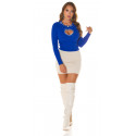 Blue Rhinestone Decorated Sweater with Heart Peek Hole