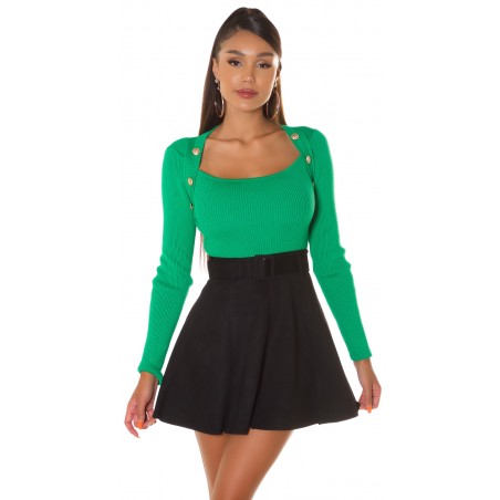 Green 2in1 rib knitwear with decorative buttons