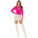 Pink Rhinestone Decorated Sweater with Heart Peek Hole