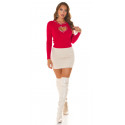 Red Rhinestone Decorated Sweater with Heart Peek Hole