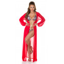 Koucla red long mesh kimono with gold laces