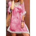 Upeaa pinkkiä batiikkikuosia oleva rantamekko. Koko on iso, joten otin itse numeroa pienemmän ja se sopii hyvin. Pitsikoristeet mekon sivuilla ovat hieman tönköt, mutta hihansuissa ja kaula-aukossa nätit.