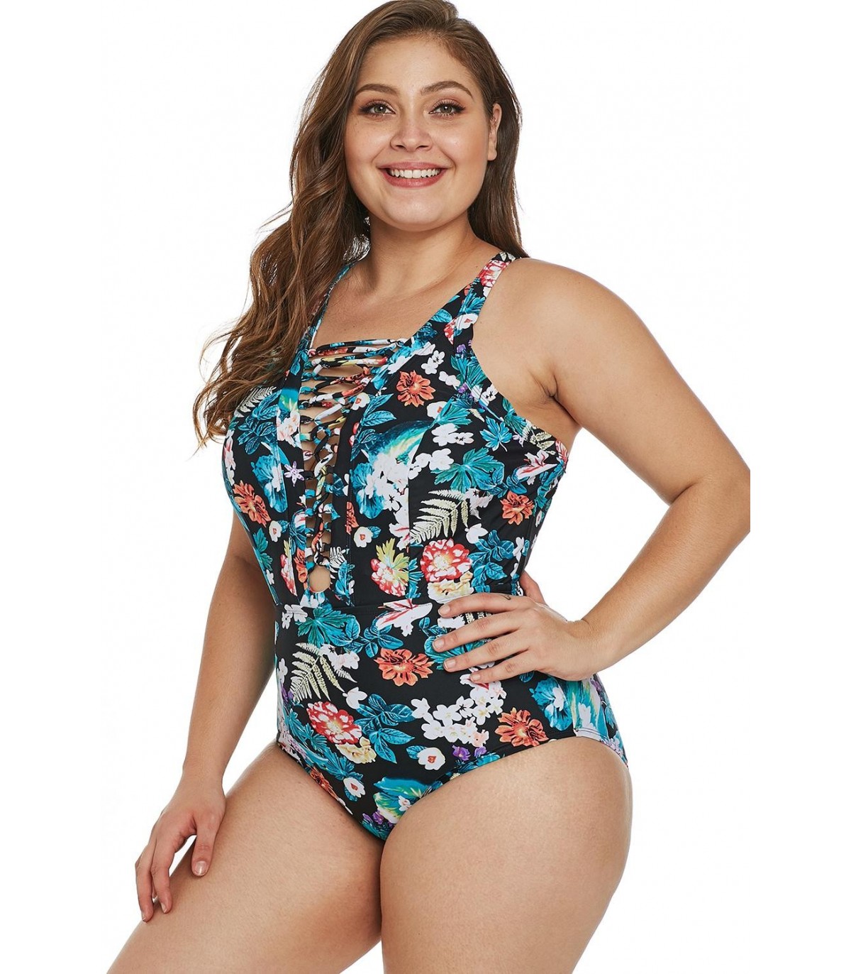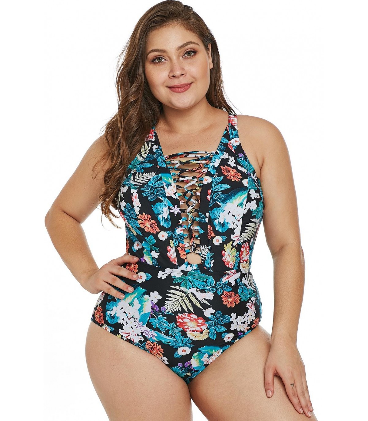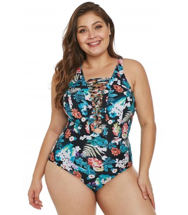 A tropic patterned nodded curved swimsuit with light tops. Best suited for women who are about 165 centimeters tall.