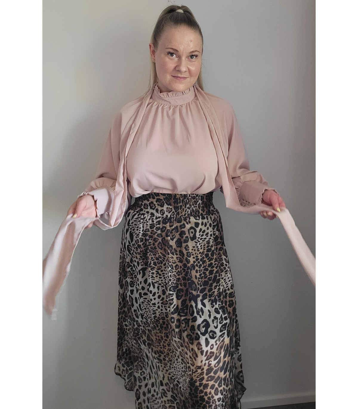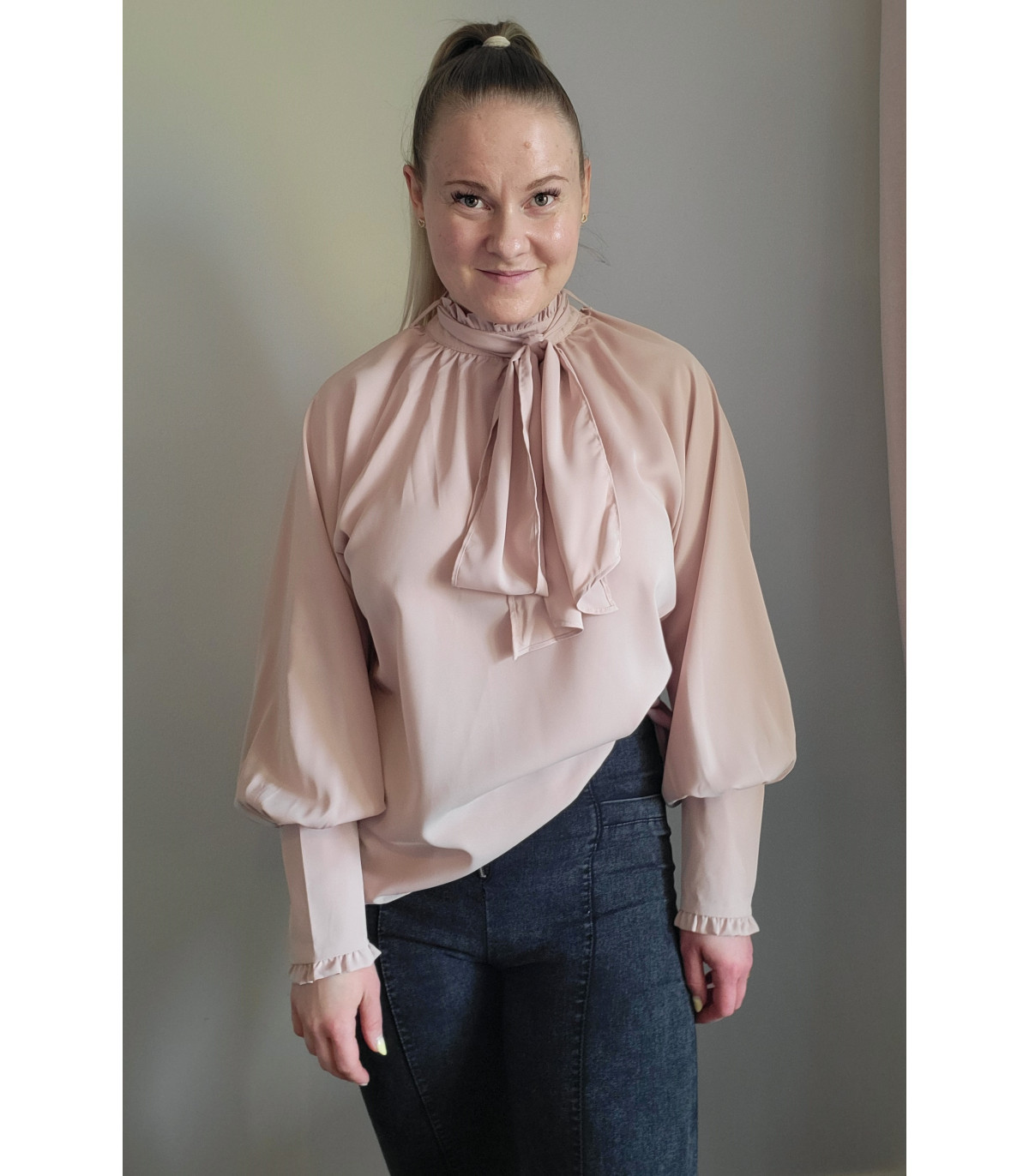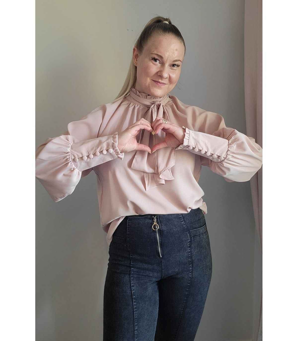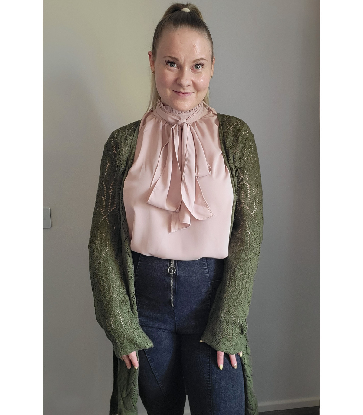 A stylish khaki blouse is perfect for occasions that require a neater dress and for many workplaces. A khaki-colored blouse with stylish details is great for business meetings and work, for example, where you need to look presentable. When you're looking for an elegant look, this blouse is also a great choice for dates and parties.