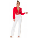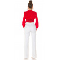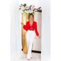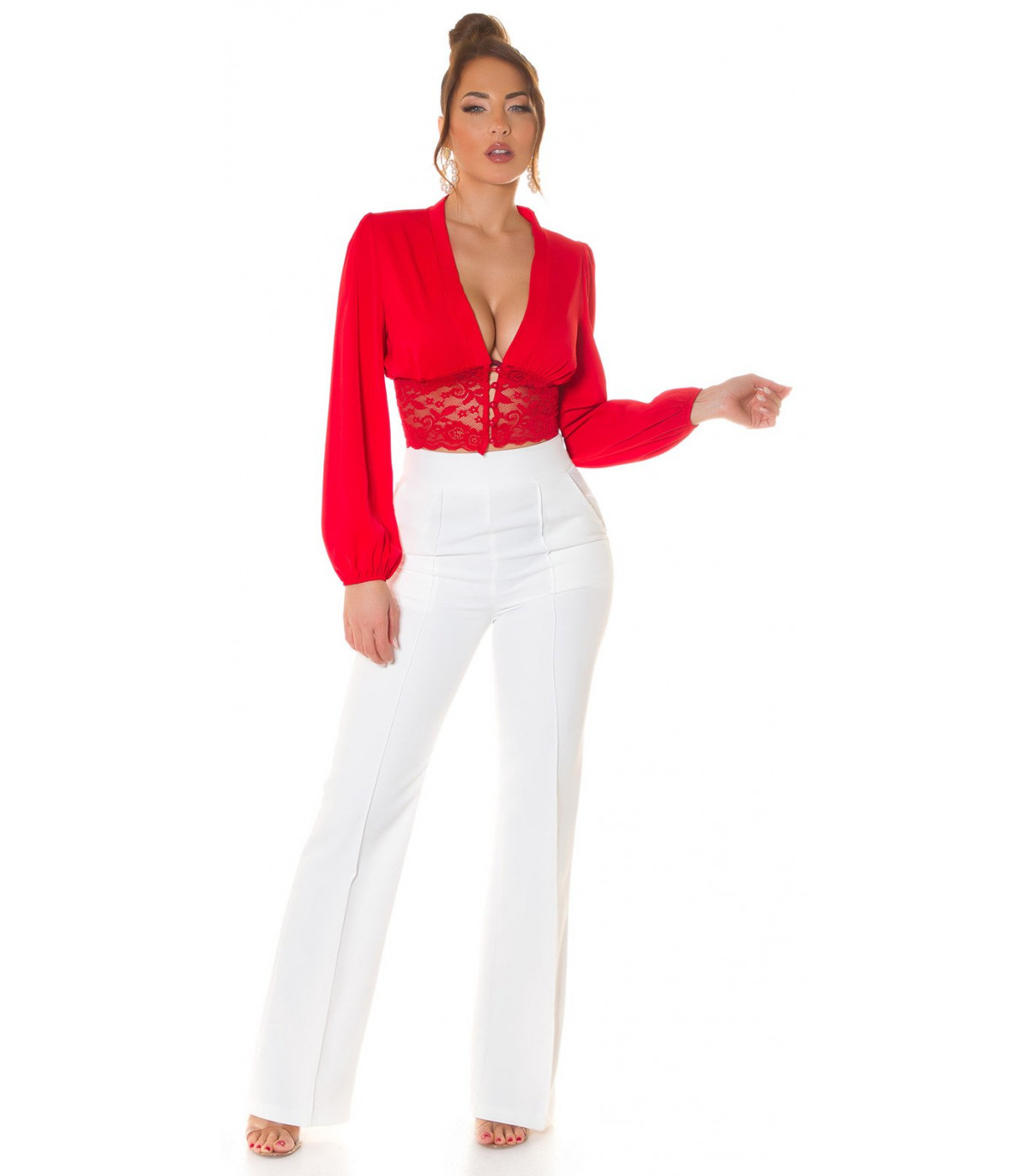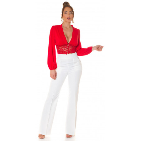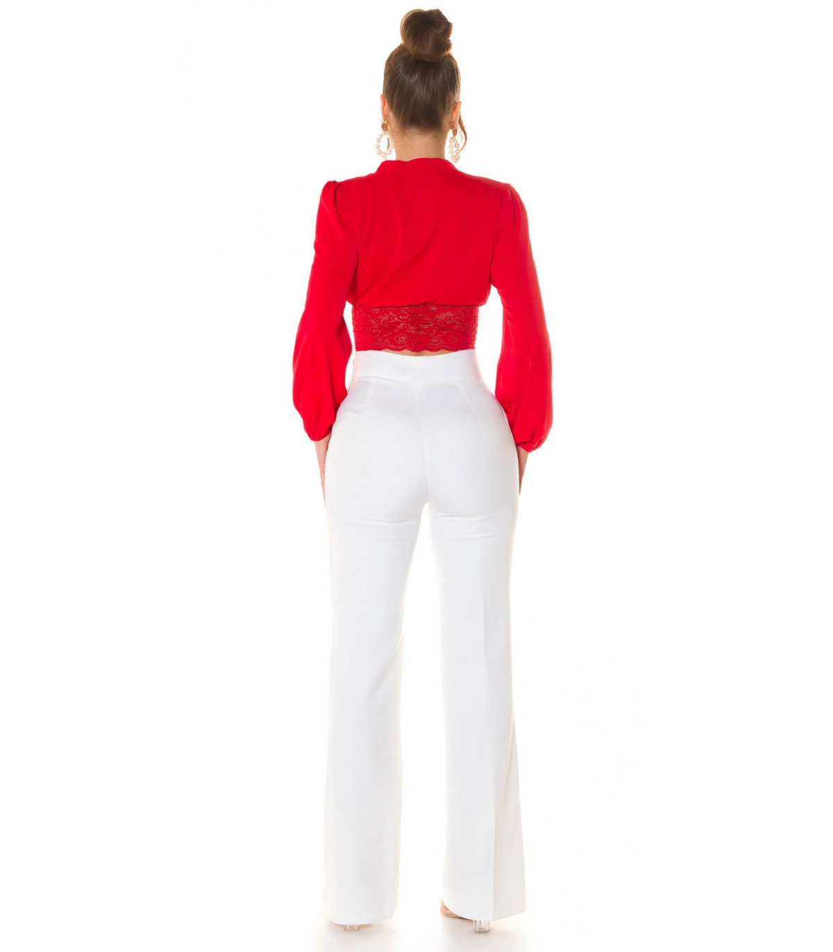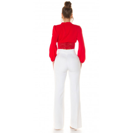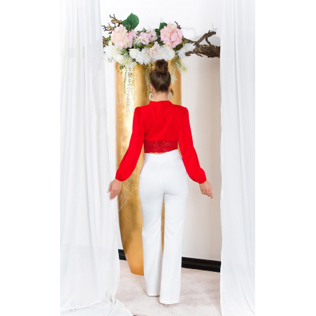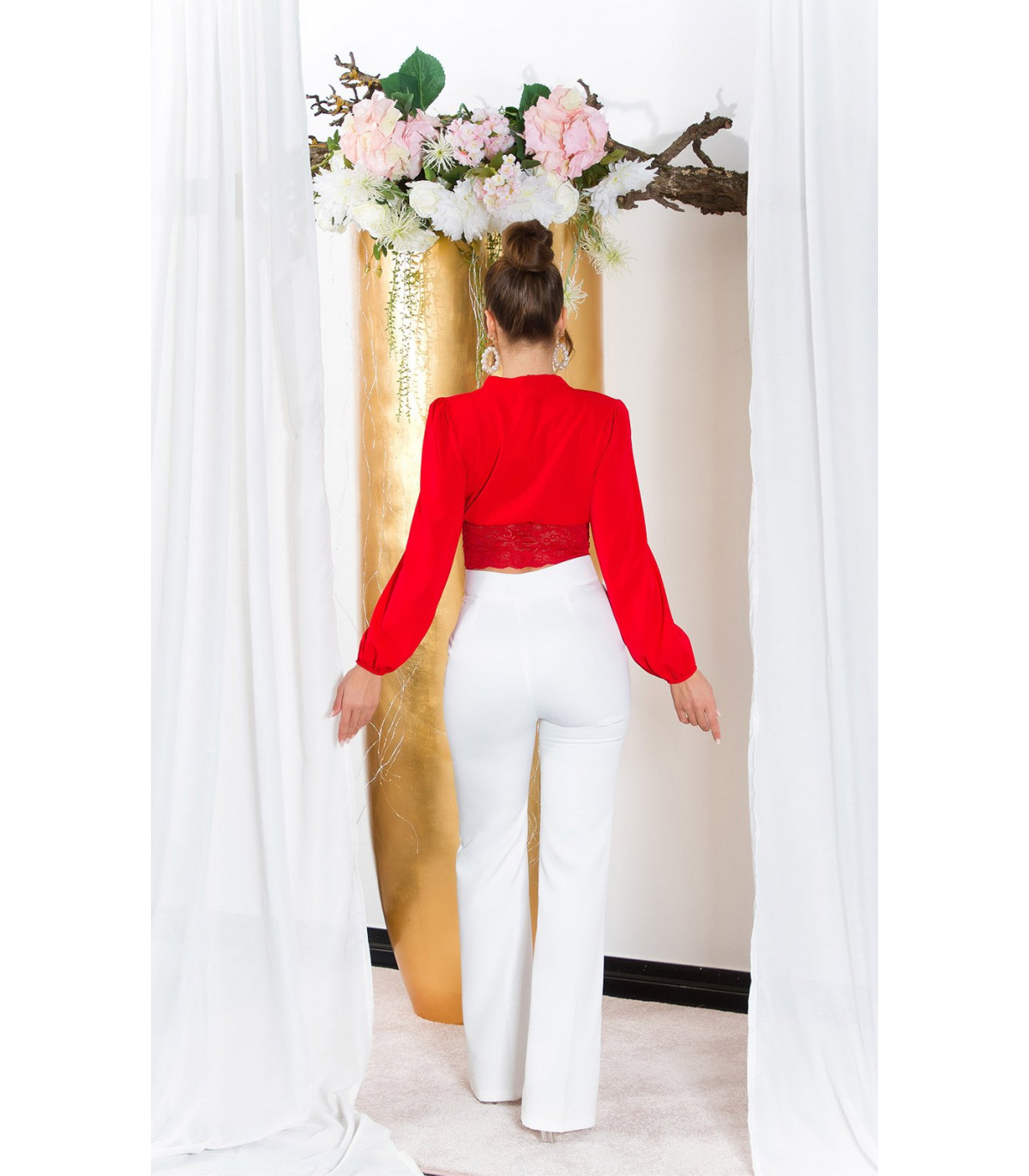 Koucla red baggy sleeved short v-blouse with lace and beads