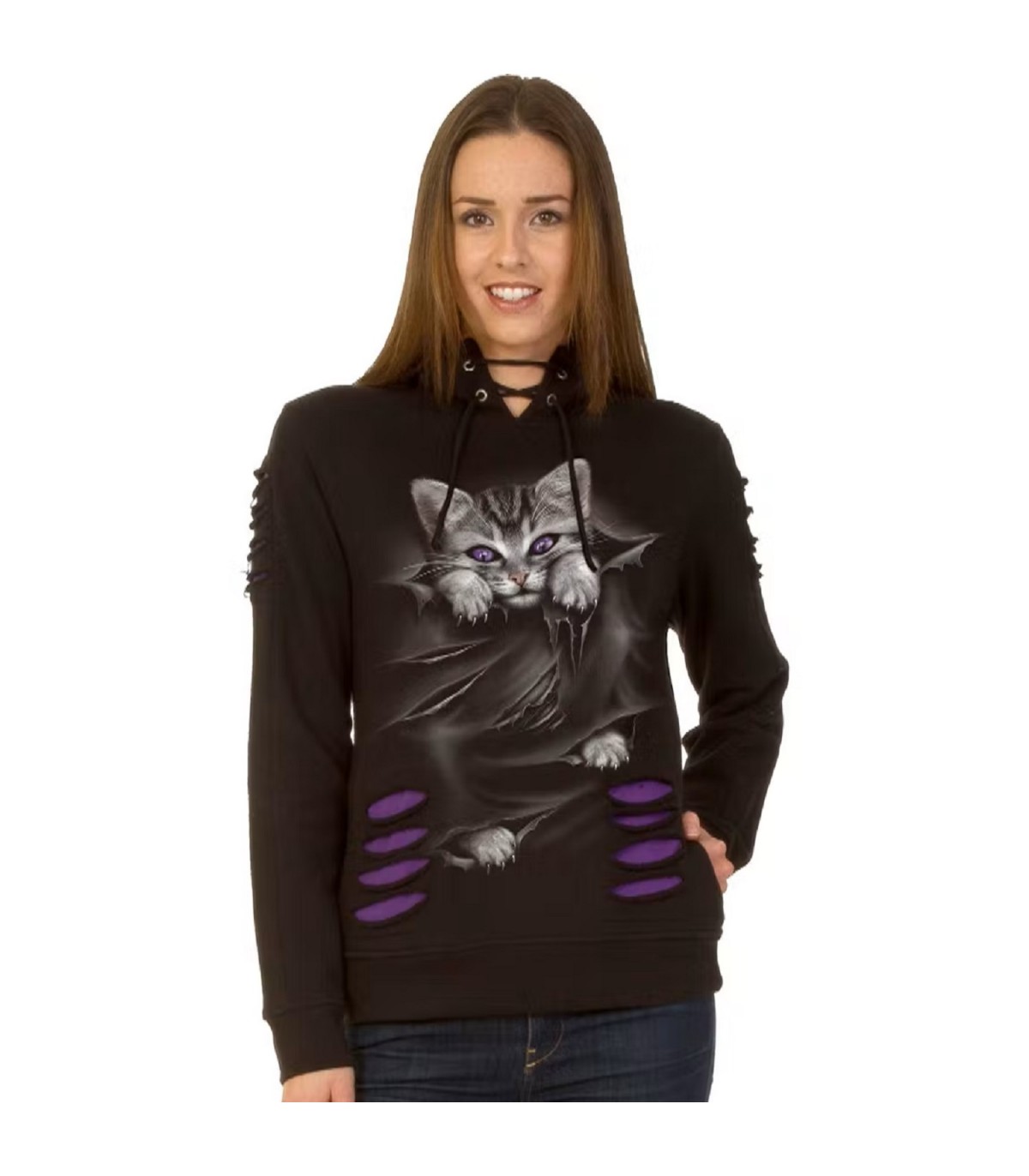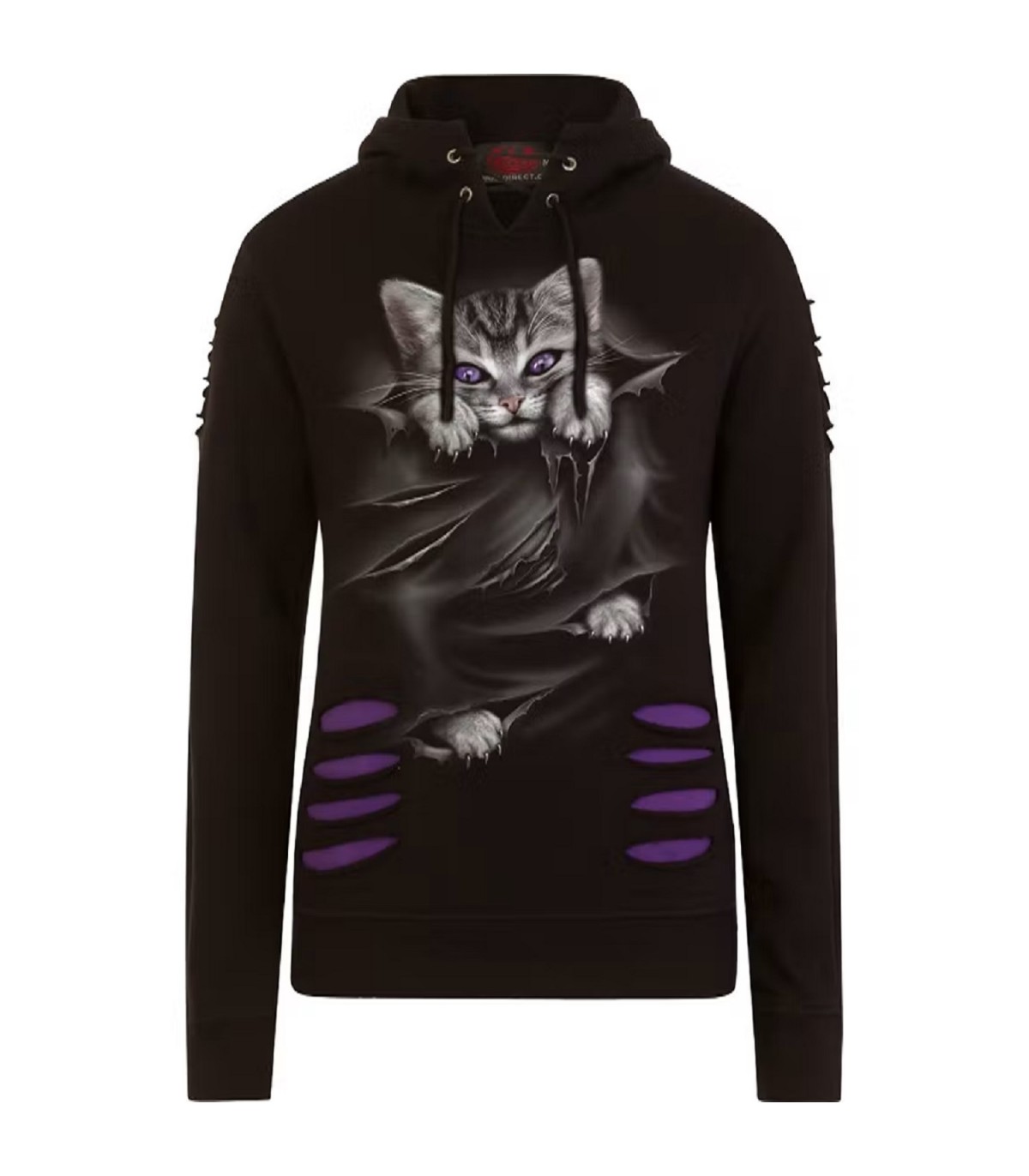 Spiral Black and Purple Cat Hoodie [DISCOVERY]