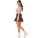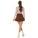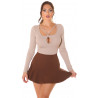 Beige long-sleeved short shirt with peephole and straps. The shirt has built-in soft cups, so you don't necessarily need a bra under it. A short long-sleeved shirt with flashy details is a sexy shirt for a date or party. Crop shirt looks especially spectacular with high-waisted trousers or a skirt. A thong-trimmed shirt with a peek hole magnificently accentuates the breasts, and the short model brings out the waist. A monochrome party shirt/date shirt is easy to style. A light, beige shirt is an earthy color that looks great with many different colors. When styled correctly, a monochrome shirt is also suitable for everyday wear.