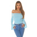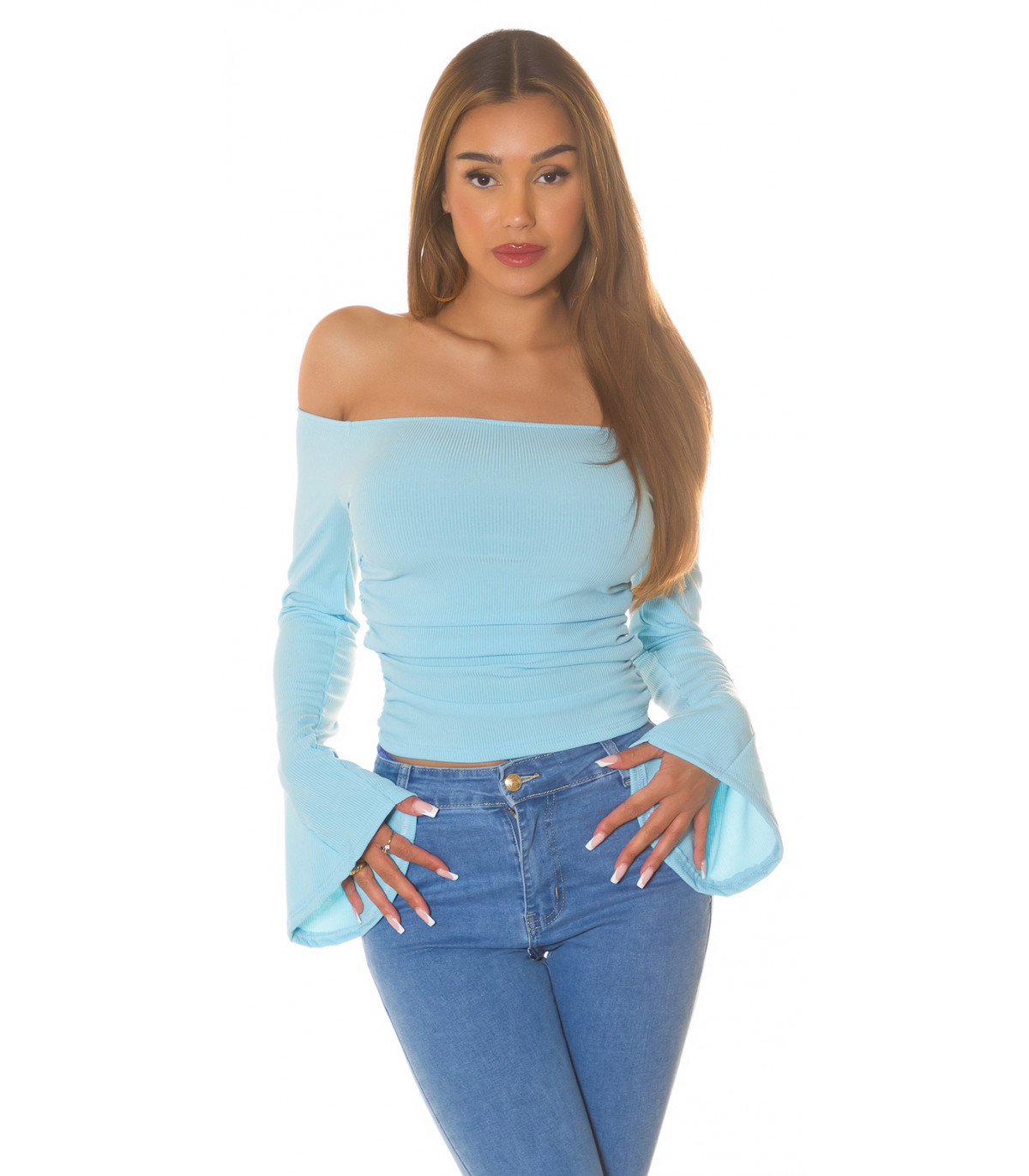 Koucla light blue off-shoulder wide-sleeved ribbed shirt