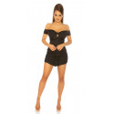 Black off-shoulder short-sleeved ribbed latin shirt