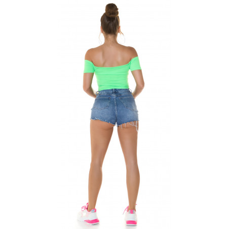 Green off-shoulder short-sleeved ribbed platinum shirt