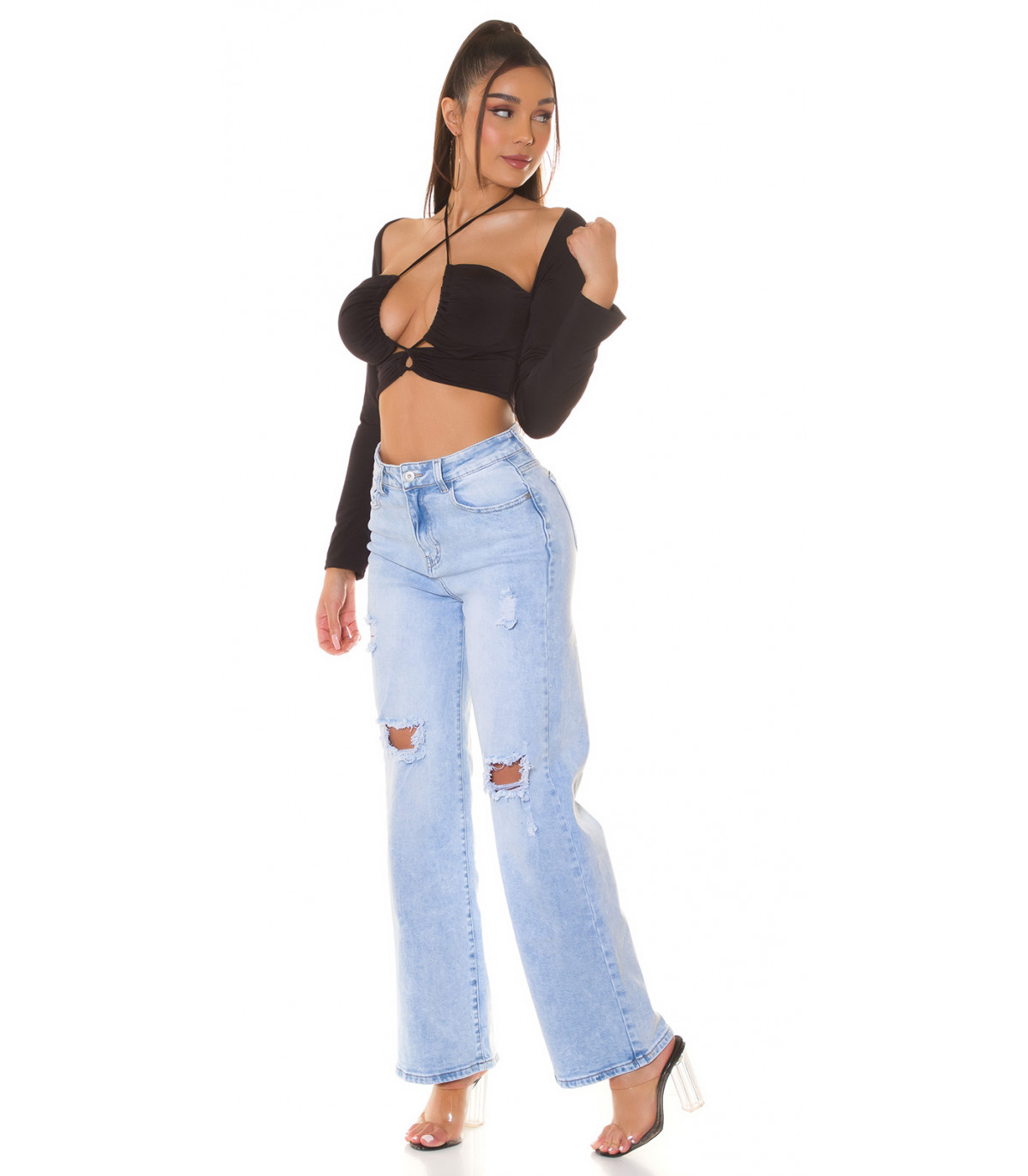 Koucla black long-sleeved multiway short shirt