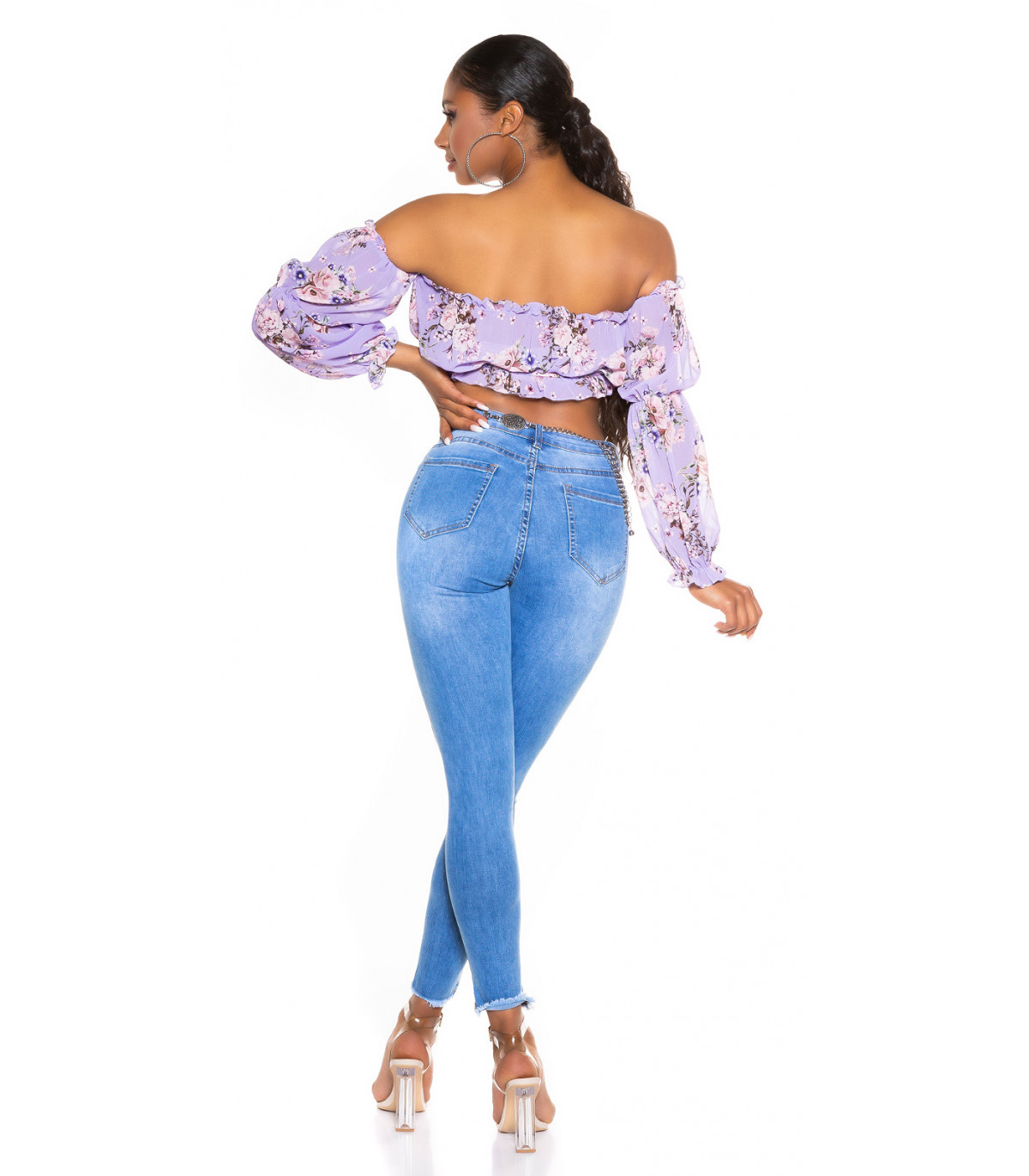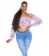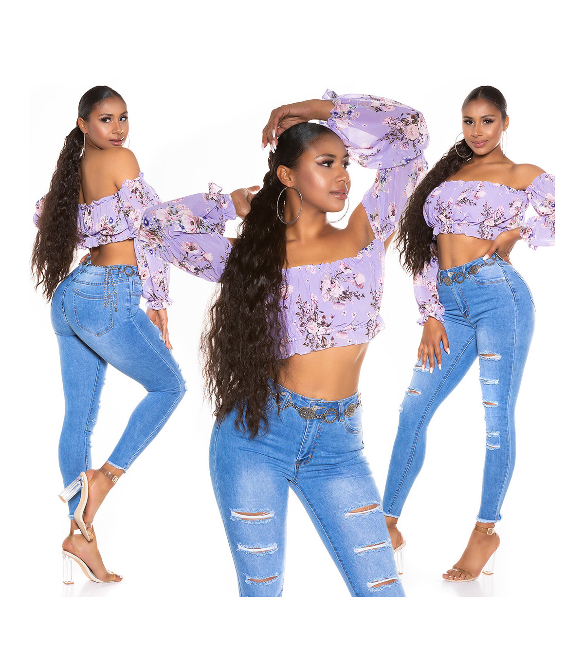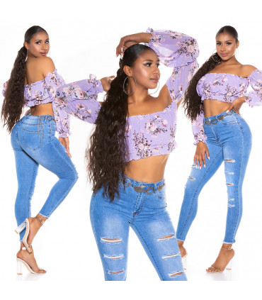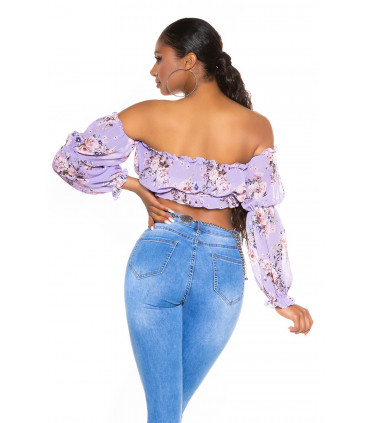 Lilac floral pattern Long Sleeve Short Latin Shirt [DISCOVERY]