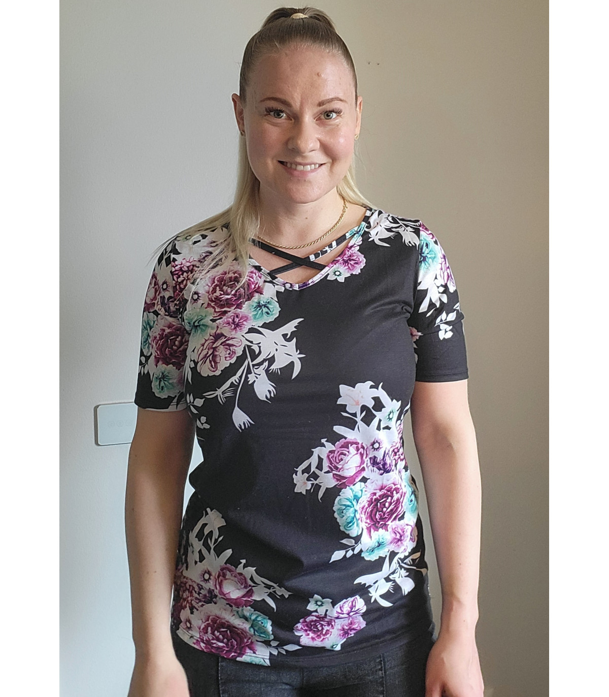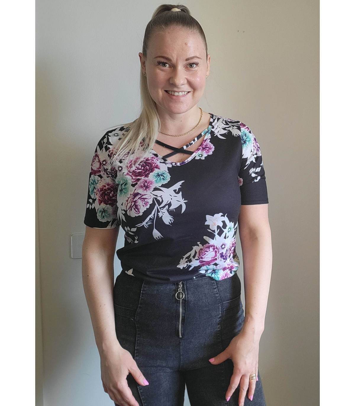 Paita on kaunis ja korostaa juuri oikeista paikoista. Erittäin ihanan tuntuinen kangas.