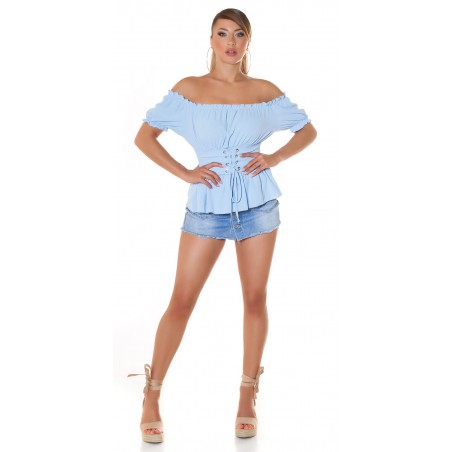 Koucla light blue short-sleeved corsetlook Latin shirt