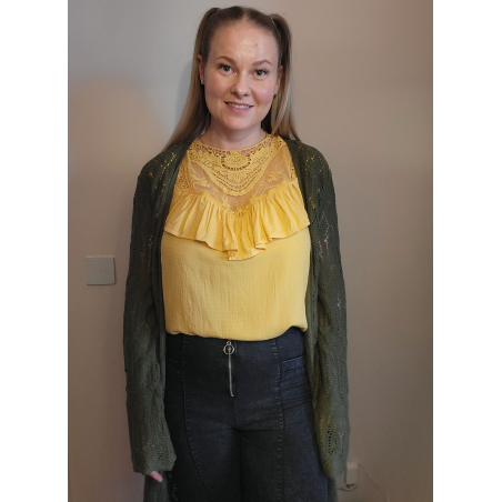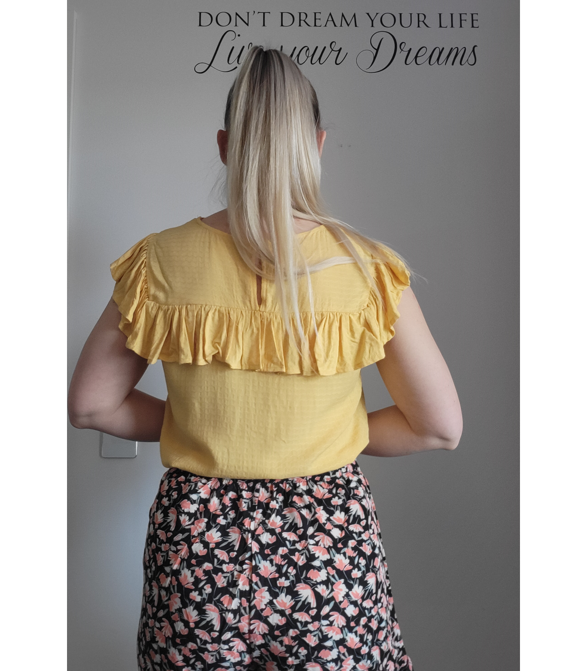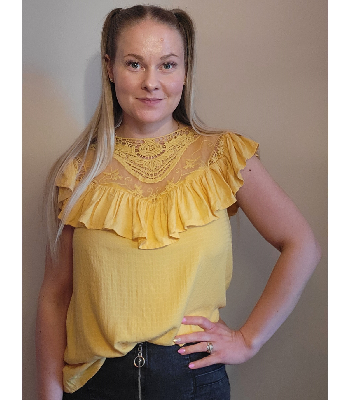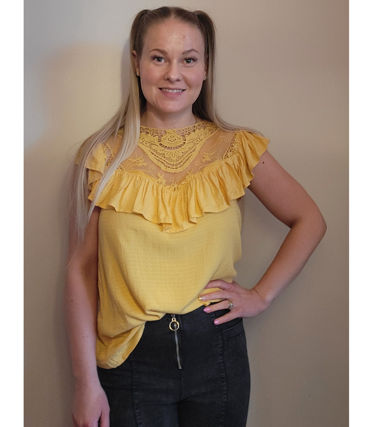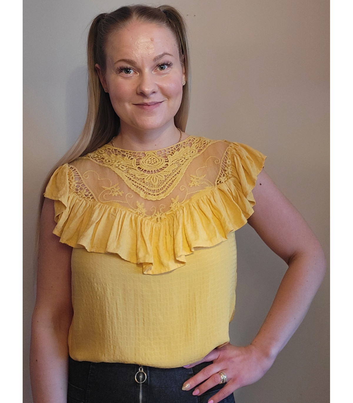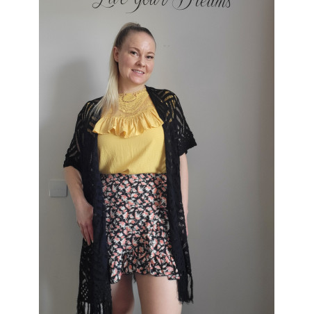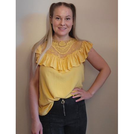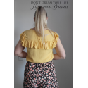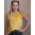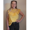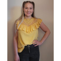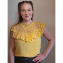 Yellow short-sleeved decorative embroidered shirt with ruffle