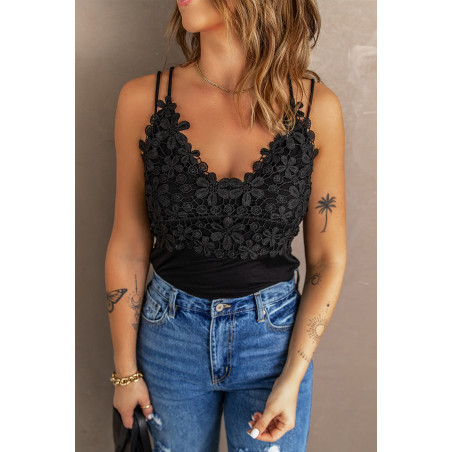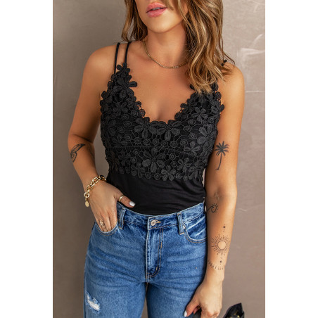 Black embroidered top with double straps