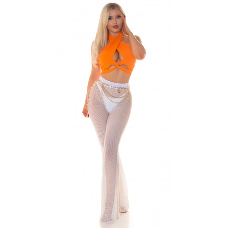 Koucla orange short neckholder top with peephole and laces