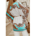 Print Pattern short-sleeved loose-fitting V-tunic with bat sleeves. Chain belt is not included in the product.