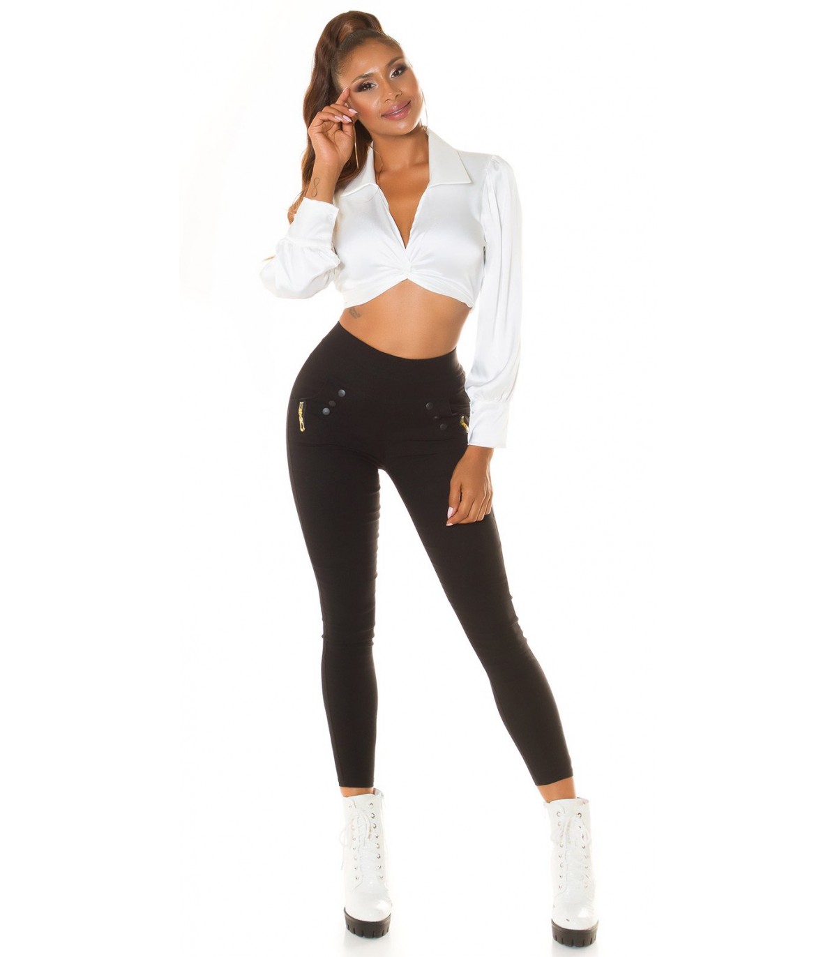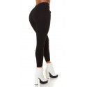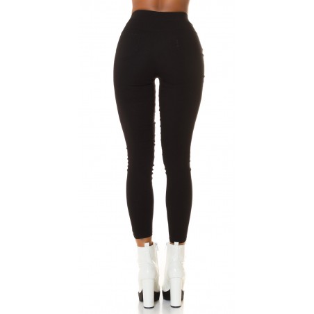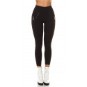 Black high-waisted treggings with pockets and ornaments