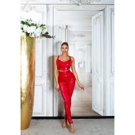 Koucla red high-waisted latex look pants