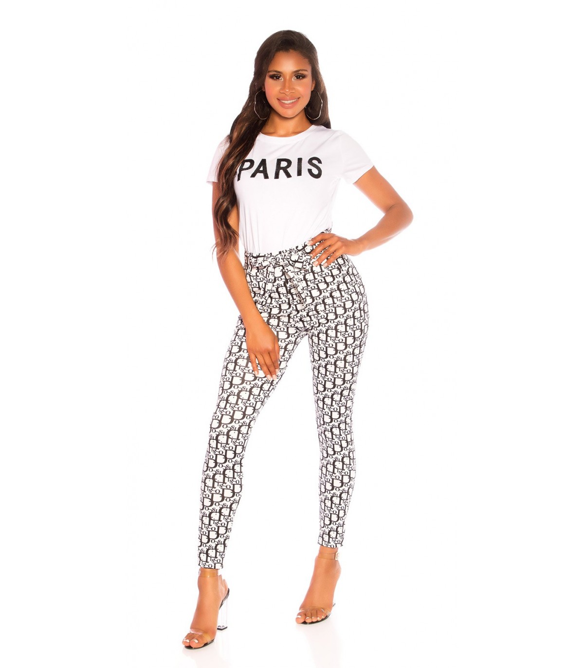 Superpehmeää kangasta, jossa kiva sähäkkä kuviointi. Nuolevat muotoja mukavasti, sopivat hyvin väljän yläosan kanssa. Tykkään näistä housuista.