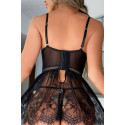 Black transparent two-shoulder lacy babydoll with garter vest. The arch-supported cups are best suited for approx. B-cups, the cups are made of transparent lace and have no padding. Mesh socks sold separately.