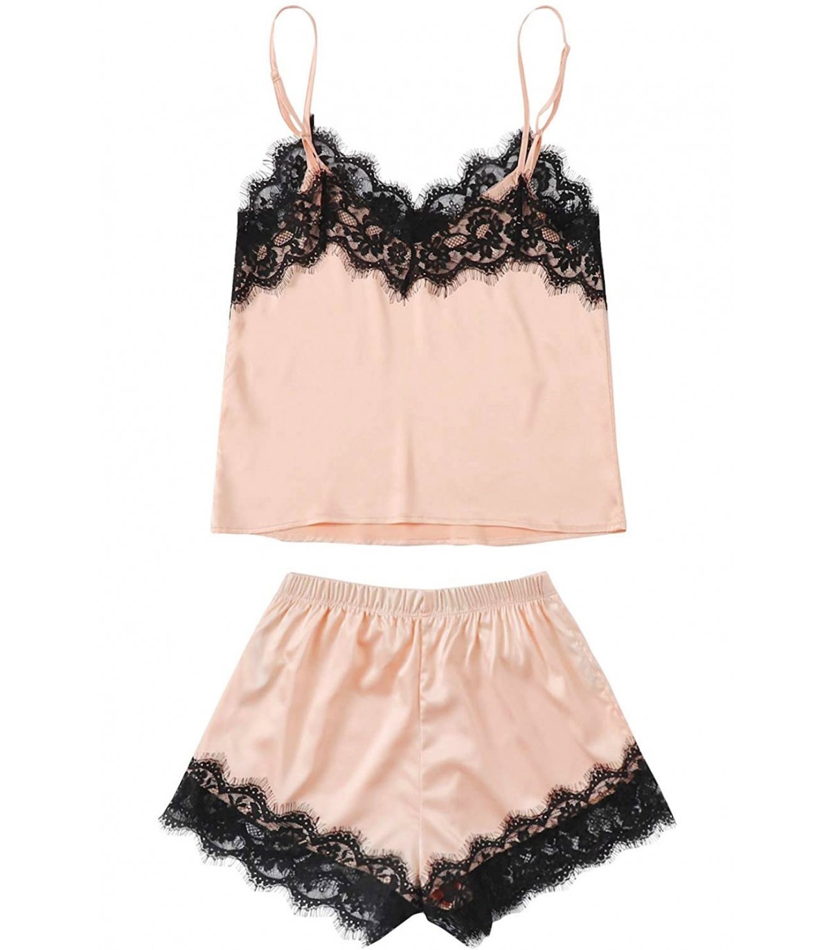 Apricot lace-ornamented satinpyjamaset