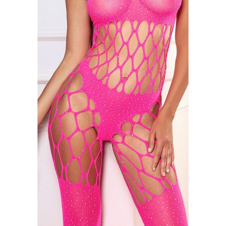 Pink rhinestone-trimmed mesh underwear with socks