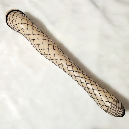 Black fishnet socks decorated with rhinestones