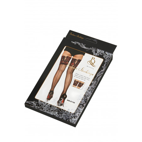 Punamustat stay-up sukat pitsillä ja nyöreillä