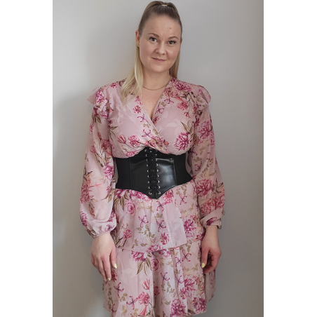 Musta leveä tekonahkainen vyötärövyö nyöreillä