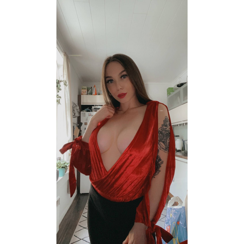 Punainen v-body halkiohihoilla