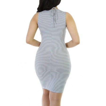 Harmaavalkoinen nyörikoristeinen raitamekko [LÖYTÖ]