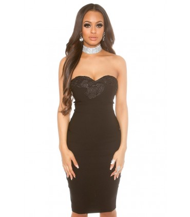 Koucla black strapless embroidered midi dress (Automatic translation)