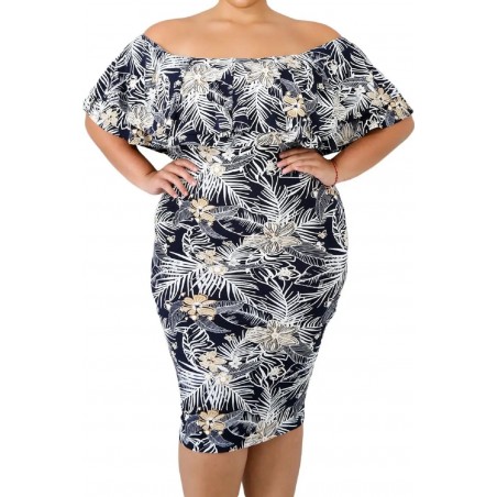 Plus de details Älä mieti liian pitkään - viimeinen kappale varastossa!Kukkakuvioinen off-shoulder midimekko röyhelöllä (plus size) [LÖYTÖ]