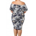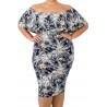 Kukkakuvioinen off-shoulder midimekko röyhelöllä (plus size) [LÖYTÖ]