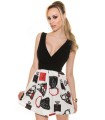 Musta printtikuvioinen v-skater-minimekko [LÖYTÖ]