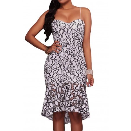 Mustavalkoinen takaa pidempi merenneitohelmainen midimittainen juhlamekko. Saatavilla vain tämä erä - emme saa tuotetta näillä näkymin enää lisää!