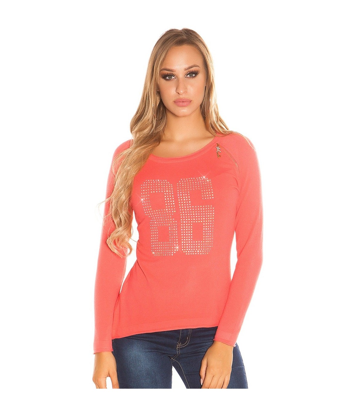 Koralli pitkähihainen strassikoristeinen 86 neule vetoketjuilla.