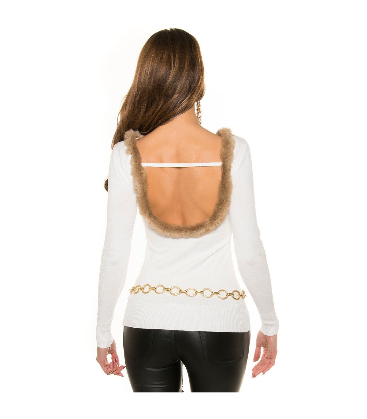 Koucla valkoinen turkiskauluksellinen neule [LÖYTÖ]