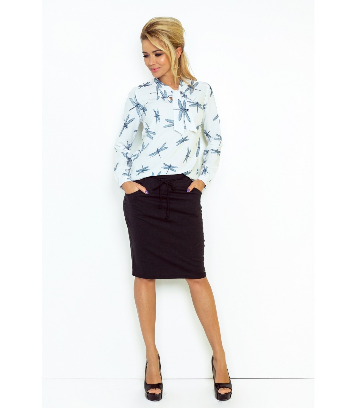 Numoco valkoinen sudenkorentokuvioinen pusero rusetilla [LÖYTÖ]