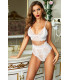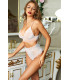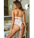 Valkoinen korkeavyötäröinen pitsialusasusetti nyöreillä