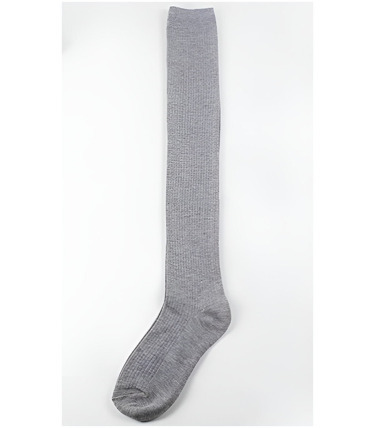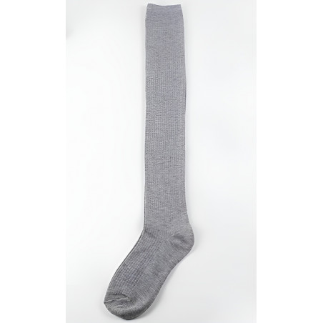 Vaaleanharmaat ylipolven sukat. Luo naisellinen asukokonaisuus ylipolvensukkien ja skater-hameen kanssa. Harmaat polvisukat sopivat erinomaisesti myös osaksi koulutyttöasua.