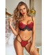 Punamusta 3-osainen sukkanauhaliivisetti pitsillä