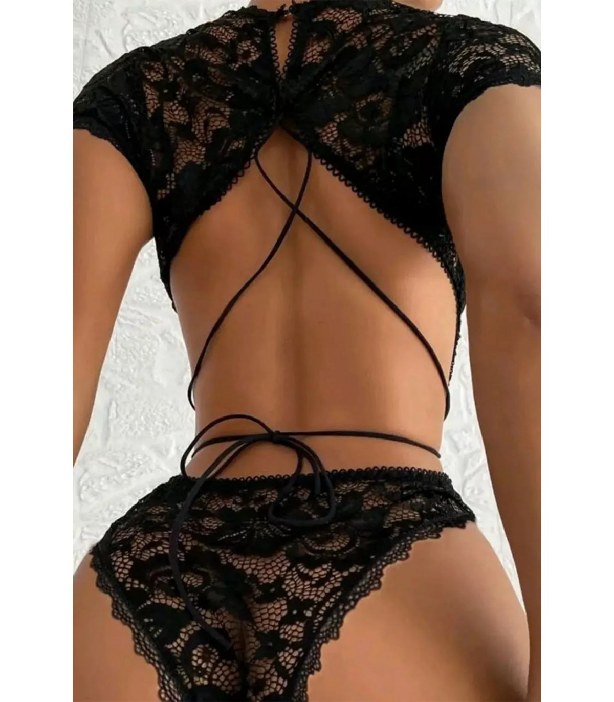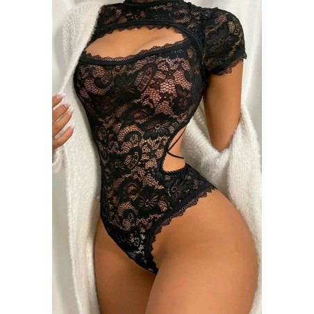 Musta avoselkäinen pitsiteddy kurkistusaukolla