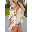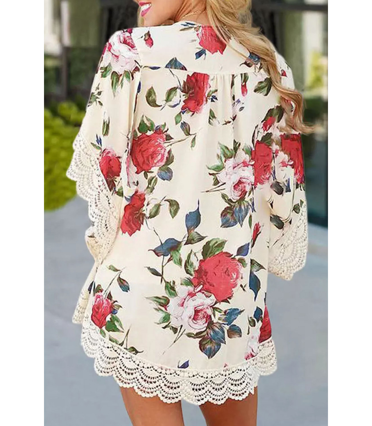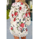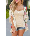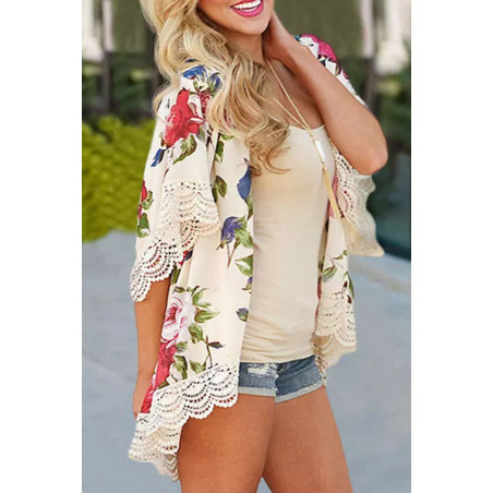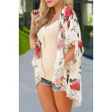 Beige ruusukuvioinen kimono koristehihoilla