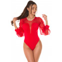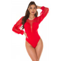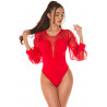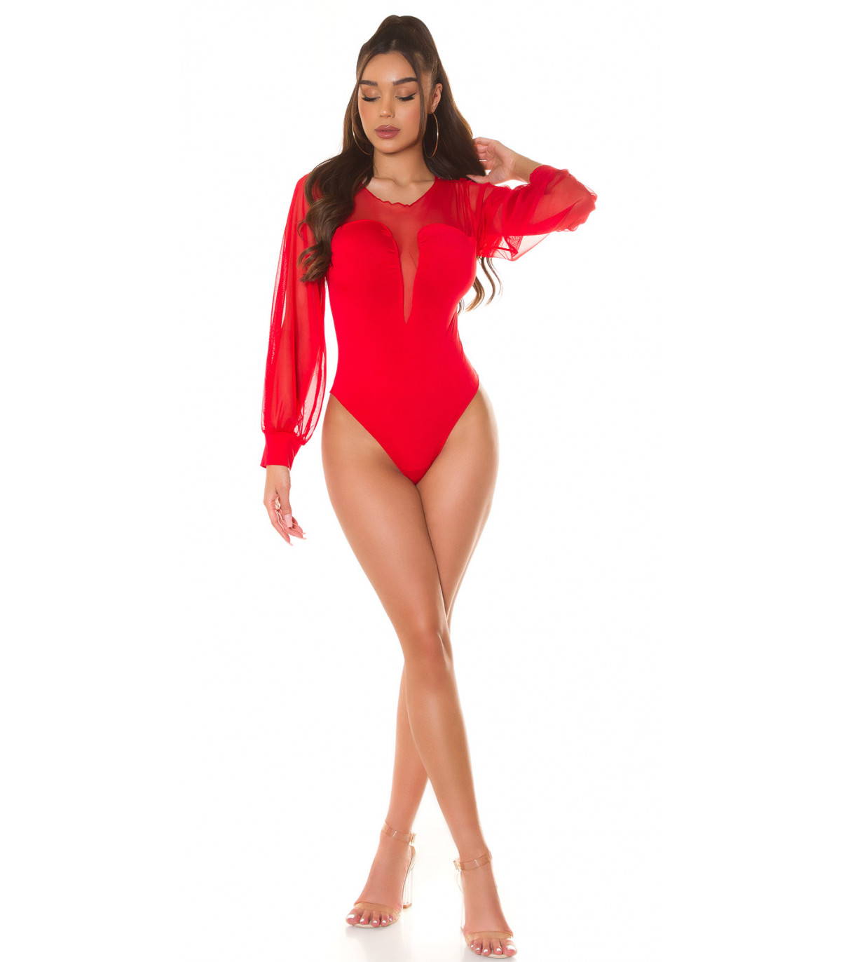 Upea punainen pitkähihainen mesh-koristeinen body - erotu eduksesi juhlissa ja bileissä